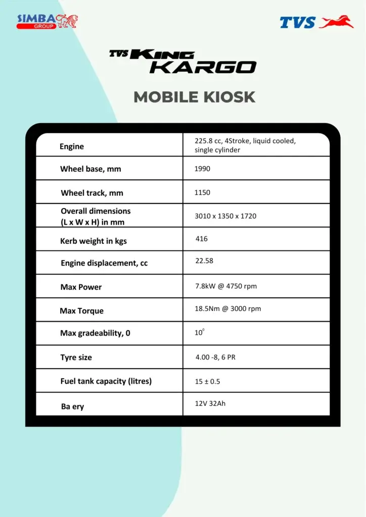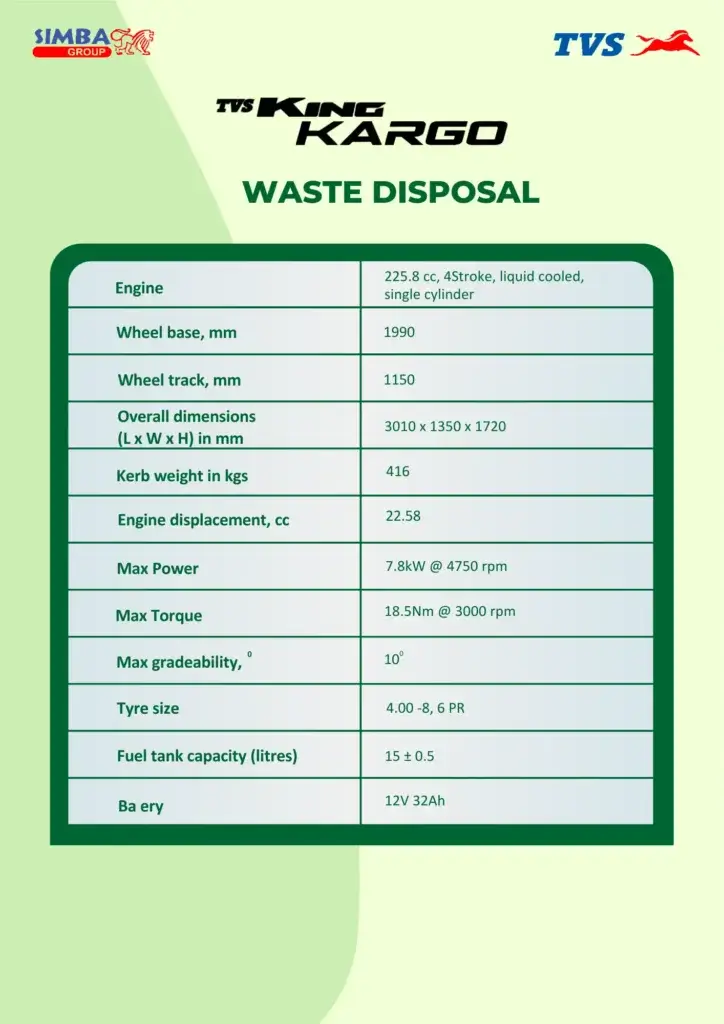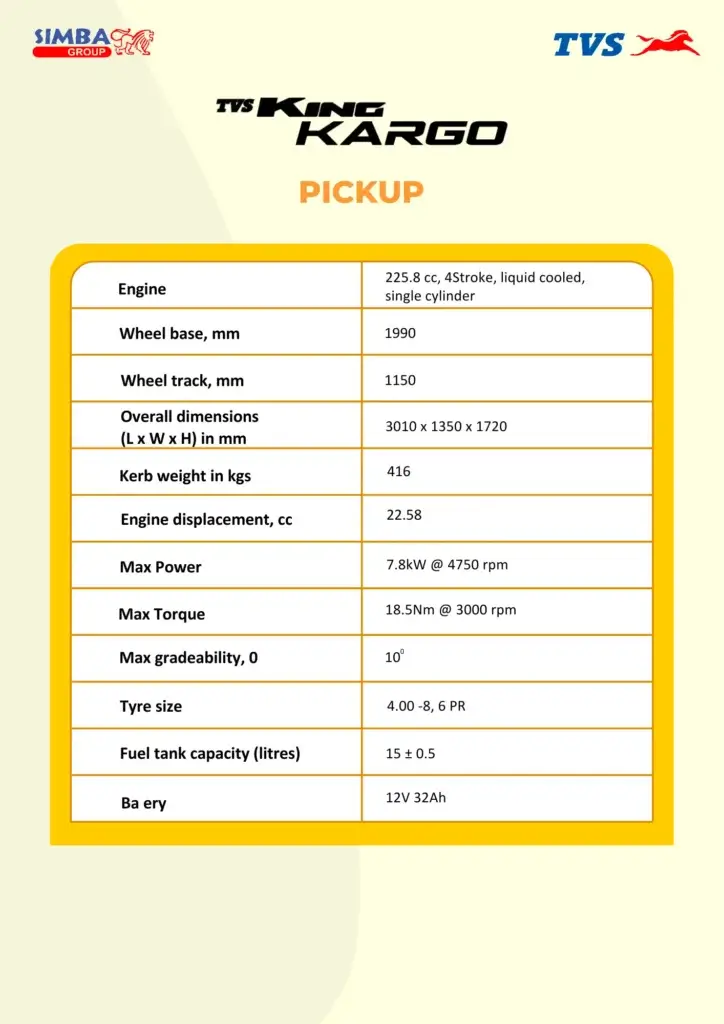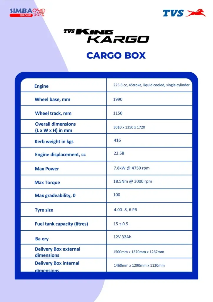 The TVS King Kargo is a powerful work horse with multiple application to meet your last mile cargo transportation need. With its low maintenance, best-in-class power and pick up, It is indeed the most versatile, rugged and sturdy 3 Wheeler in Nigeria for transporting cargo!